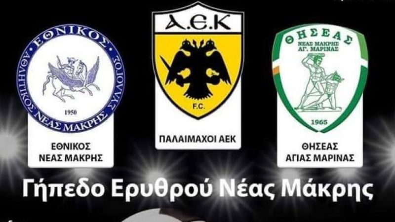 Οι Παλαίμαχοι της ΑΕΚ και τα σωματεία της πόλης Εθνικός Νέας Μάκρης και Θησέας Αγίας Μαρίνας, θα αναμετρηθούν την Τετάρτη 19 Σεπτεμβρίου και ώρα 17.00 στο γήπεδο Ερυθρού Νέας Μάκρης, με σκοπό την ενίσχυση οικογένειας του μικρού Μάριου που είδε την 23η Ιουλίου το σπίτι του να γίνεται στάχτη…