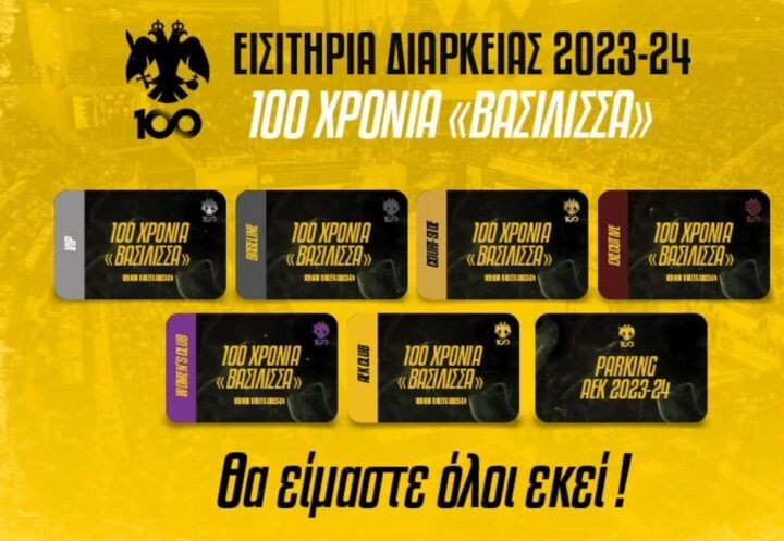 Στην κυκλοφορία τα «Διαρκείας» 2023-2024 – Προτεραιότητα οι κάτοχοι της περασμένης περιόδου 💛https://t.co/KIOgkh0Z2i#aekbc #seasontickets #100years pic.twitter.com/nwKjSqIGL7