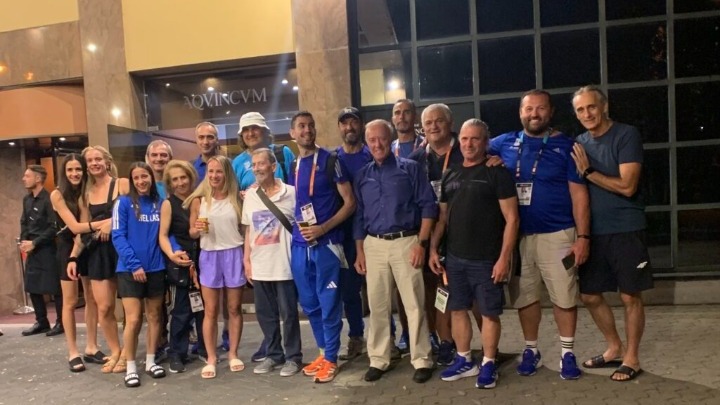 Στην είσοδο του ξενοδοχείου της ουγγρικής πόλης ήταν και τα περισσότερα μέλη της ελληνικής αποστολής με την Αντιγόνη Ντρισμπιώτη – που το πρωί της ίδιας ημέρας είχε κατακτήσει το χάλκινο μετάλλιο στο βάδην – να έχει στο χέρι της ένα ποτήρι μπίρα για να κεράσει τον Μίλτο Τεντόγλου.