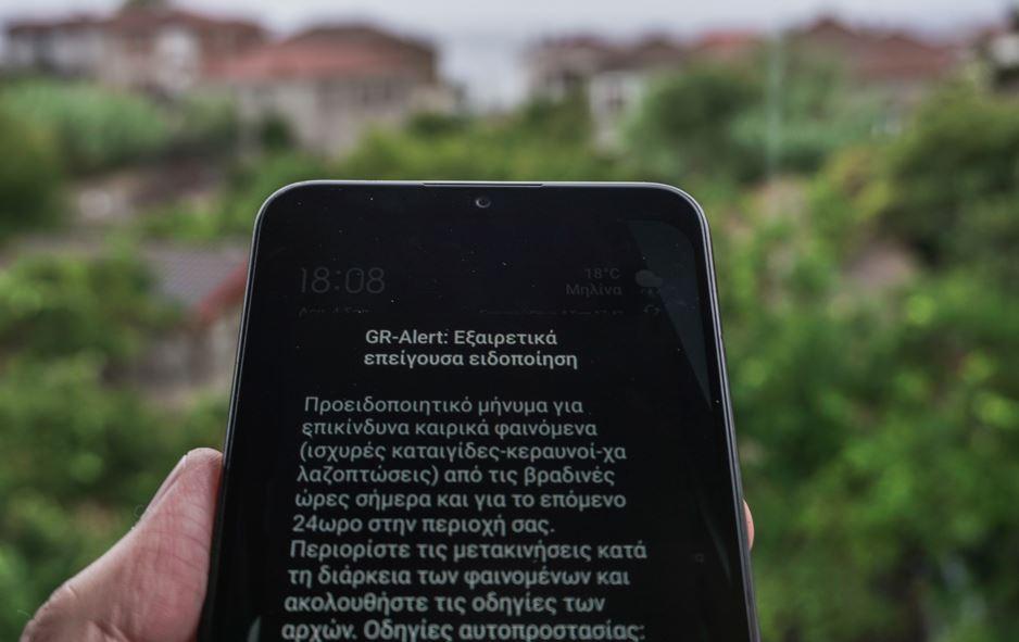 Συγκεκριμένα το μήνυμα αναφέρει:« Επικίνδυνα καιρικά φαινόμενα (ισχυρές καταιγίδες- κεραυνοί-χαλαζοπτώσεις) από τις βραδινές ώρες σήμερα και για το επόμενο 24ώρο σε Πιερία, Θεσσαλία, Σποράδες, Εύβοια και Φθιώτιδα. Περιορίστε τις μετακινήσεις κατά τη διάρκεια των φαινομένων και ακολουθείτε τις οδηγίες των Αρχών».