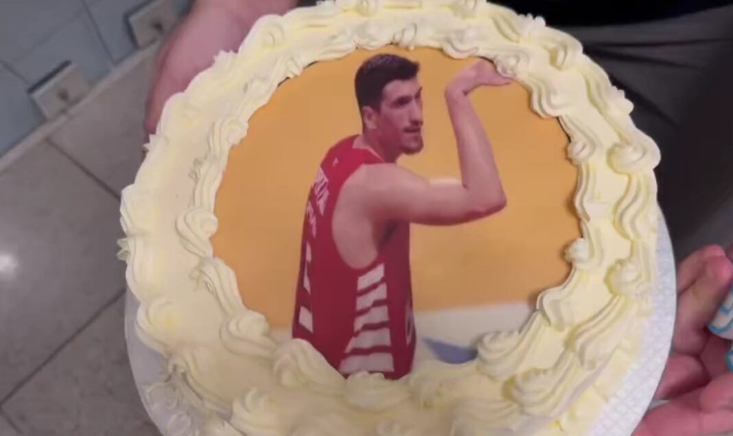 🎂🐍🥳 After game party!!! Happy B-Day @gianlary5 ! #OlympiacosBC #WeAreOlympiacos #TogetherWeFight pic.twitter.com/1m74WxprGN