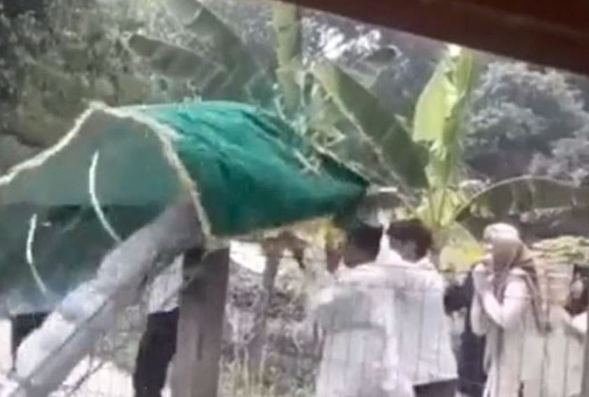 Το περιστατικό συνέβη στην Ινδονησία, κατά τη διάρκεια μίας κηδείας. Τέσσερις άνδρες μεταφέρουν ένα φέρετρο (ανοιχτό, όπως συνηθίζεται στη χώρα και με το πτώμα καλυμμένο με ένα μεγάλο πράσινο πανί που γράφει προσευχές του Ισλάμ).