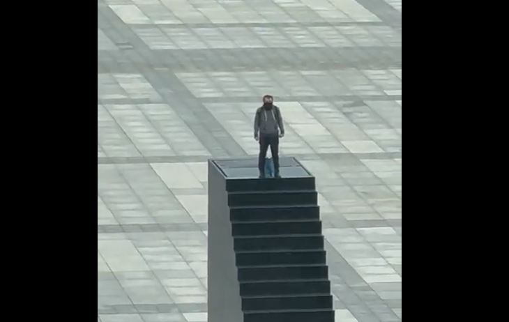 Ο άνδρας που είχε σκαρφαλώσει σε ένα μνημείο και απειλούσε ότι θα πυροδοτήσει μια βόμβα στην πλατεία Πιλσούντσκι της Βαρσοβίας, παραδόθηκε στην αστυνομία.