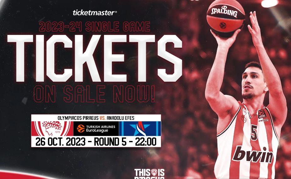 «H Κ.Α.Ε ΟΛΥΜΠΙΑΚΟΣ ανακοινώνει ότι, για τον αγώνα με την ANADOLUEFESISTANBUL της ΠΕΜΠΤΗΣ 26/10/2023 με ώρα έναρξης 22:00, η διάθεση των εισιτηρίων θα γίνει ως εξής:
