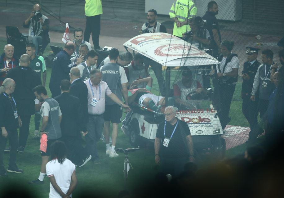 Το ντέρμπι ανάμεσα σε Ολυμπιακό και Παναθηναϊκό στο Καραϊσκάκη διακόπηκε οριστικά έπειτα από την απόφαση των Πράσινων να μη βγουν στον αγωνιστικό χώρο, την ώρα που ο Χουάνκαρ διακομίσθηκε με ασθενοφόρο σε νοσοκομείο για εξετάσεις.