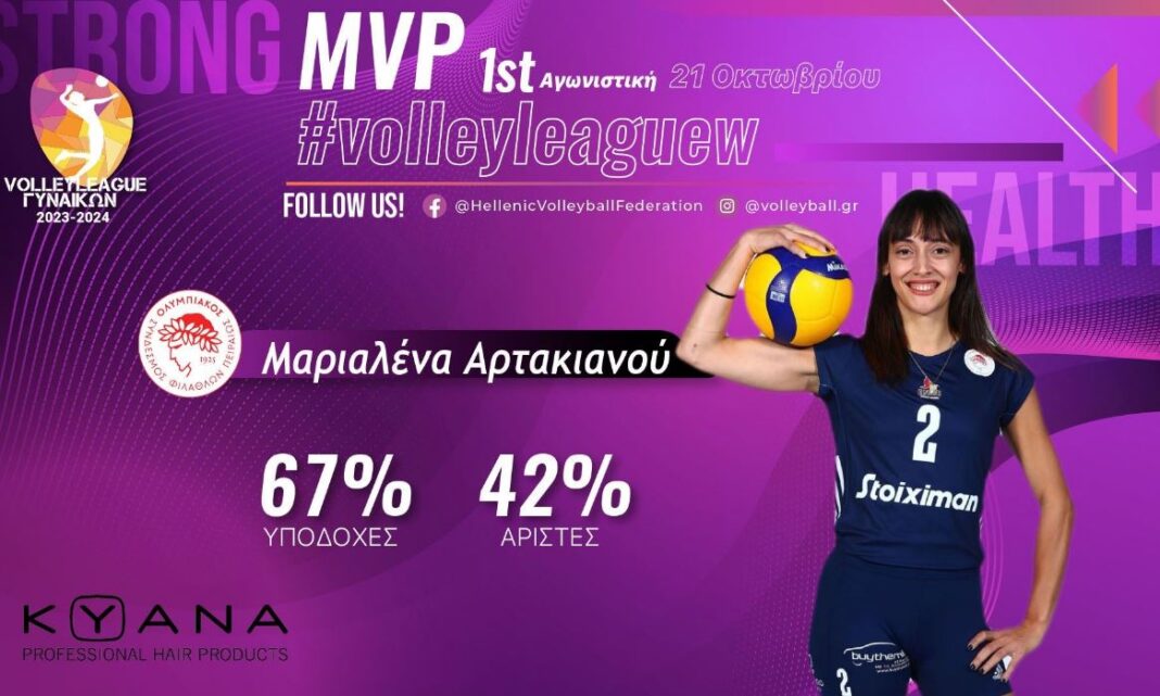 Η Μαριαλένα Αρτακιανού είναι η KYANA MVP της 1ης αγωνιστικής του πρωταθλήματος της Volley League Γυναικών.
