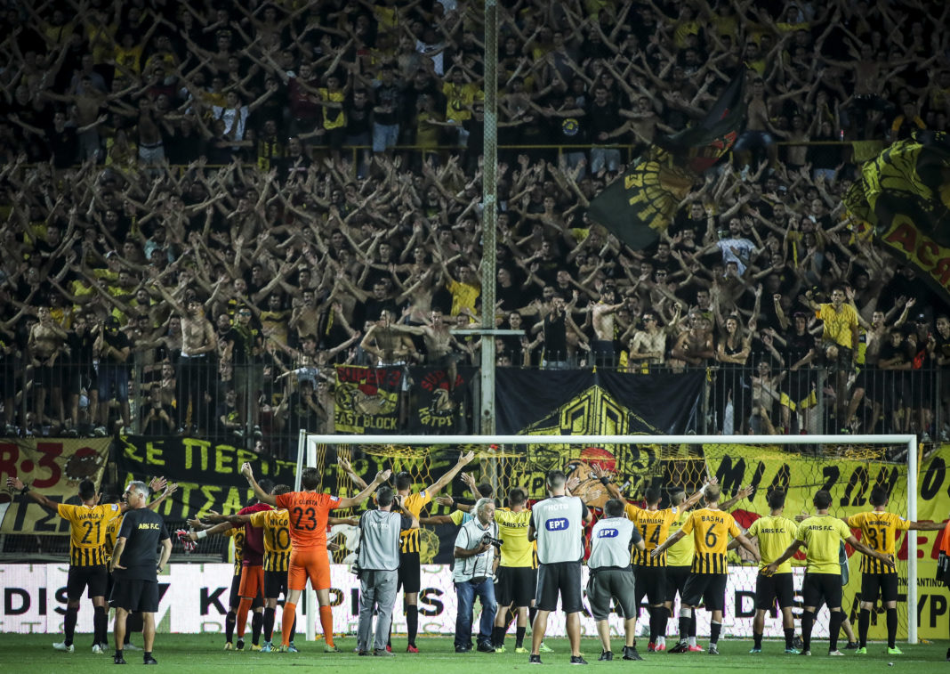 Με το σφύριγμα της λήξης του αγώνα με τους Βοιωτούς, οι ποδοσφαιριστές του Πάκο Ερέρε έτρεξαν να πανηγυρίσουν τη νίκη τους μαζί με τους οπαδούς της ομάδας, οι οποίοι γέμισαν το γήπεδο στην επιστροφή της ομάδας στη Σούπερ Λιγκ μετά από τέσσερα χρόνια (το προηγούμενο εντός έδρας ματς του Αρη με την ΑΕΛ είχε λάβει χώρα στο Καυτατζόγλειο).