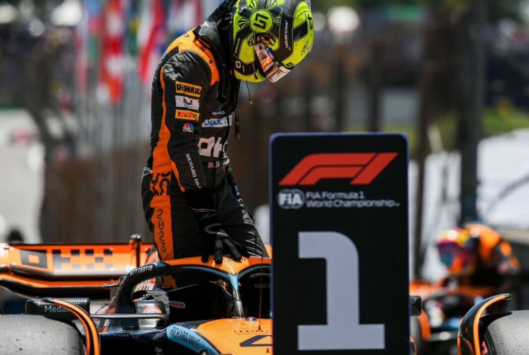 Ο Νόρις πήρε αυτό που του στέρησε η βροχή που εμφανίστηκε τη λάθος στιγμή για τον ίδιον στις χθεσινές κατατακτήριες δοκιμές και θα ξεκινήσει από την 1η θέση τον αγώνα spint. Πίσω του ακολούθησαν οι δύο Red Bull με τους Φερστάπεν και Πέρες, ενώ άσχημα κύλησε για τη Ferrari η διαδικασία αφού ο Λεκλέρ θα ξεκινήσει από την 7η θέση και ο Σάινθ από την 9η.