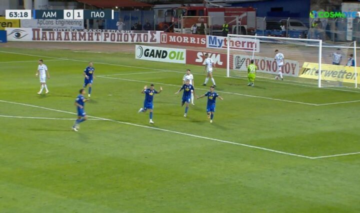Ο Τσιλούλης από τα αριστέρα έκανε γύρισμα προς τον Ισπανό φορ ο οποίος έκανε το σουτ, η μπάλα κόντραρε και κατέληξε στα δίχτυα. Με αυτό το γκολ η Λαμία απάντησε στο προβάδισμα που είχαν πάρει από το 31′ οι Πράσινοι με το εντυπωσιακό σουτ του Μλαντένοβιτς.