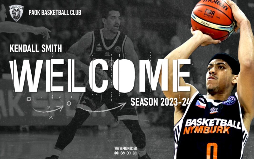 «Η ΚΑΕ ΠΑΟΚ mateco ανακοινώνει την συμφωνία με τον Αμερικανό καλαθοσφαιριστή Kendall Smith, ο οποίος αναμένεται απόψε το βράδυ στη Θεσσαλονίκη για να ενσωματωθεί άμεσα με την ομάδα μας και μέχρι το τέλος της αγωνιστικής περιόδου 2023-24.