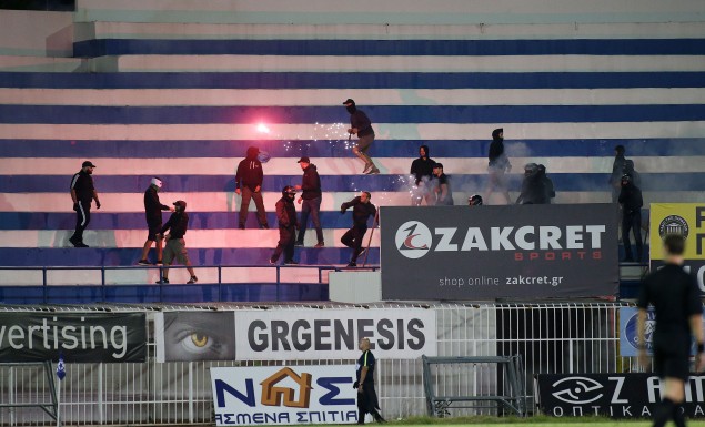 Υπενθυμίζεται πως οι οπαδοί των δύο ομάδων είχαν ανταλλάξει φωτοβολίδες και καθίσματα που διέκοψαν για κάποια λεπτά στην επανάληψη το παιχνίδι.