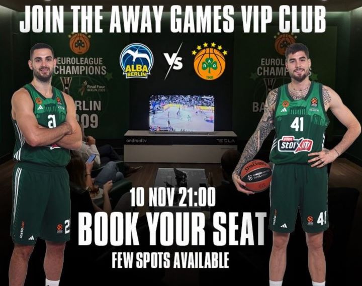 Παρέα με τους Χουάντσο Ερνανγκόμεθ και Ιωάννη Παπαπέτρου, που δεν ακολούθησαν την αποστολή στη Γερμανία λόγω τραυματισμού, θα μπορέσουν να παρακολουθήσουν τηλεοπτικά την αποψινή αναμέτρηση του Παναθηναϊκού με την Άλμπα όσοι φίλοι του τριφυλλιού κλείσουν θέση στο VIP Lounge του ΟΑΚΑ.