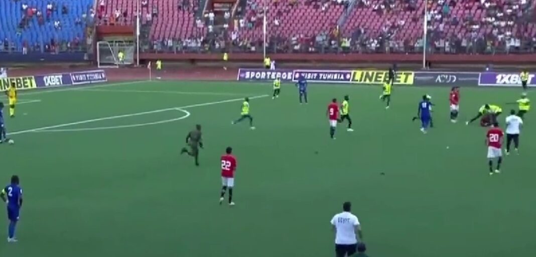 Absolutely shocking scenes from Egypt’s game against Sierra Leone as it looks like Mohamed Salah was targeted by pitch-invaders.
