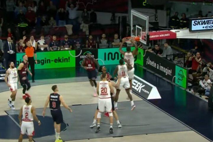 Ο Αμερικανός φόργουορντ ανέλαβε δράση μετά το χαμένο τρίποντο του Μάικ Τζέιμς, πήρε το ριμπάουντ και κάρφωσε εντυπωσιακά στη ρακέτα των Βάσκων για το τελικό 77-75.