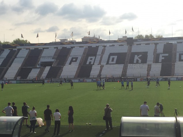 Η τελευταία προπόνηση του ΠΑΟΚ πραγματοποιείται στην Τούμπα ενόψει της αυριανής αναμέτρησης με την Τσέλσι (19:55), στην πρεμιέρα του Γιουρόπα Λιγκ.