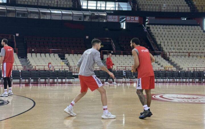 Το νέο μεταγραφικό απόκτημα των Ερυθρολεύκων πάτησε το παρκέ του ΣΕΦ την Κυριακή (26/11) για την πρώτη του ομαδική προπόνηση με τους νέους του συμπαίκτες, με τον Χρήστο Μπαφέ να κοινοποιεί μια φωτογραφία από τις πρώτες του στιγμές με τα ερυθρόλευκα και την πορτοκαλί μπάλα στα χέρια, υπό το μαρκάρισμα του Λούντζη.
