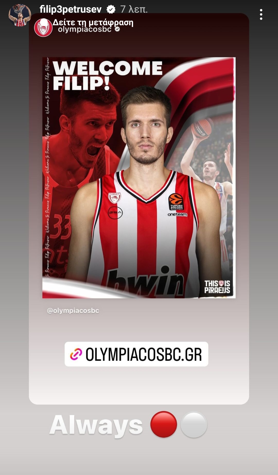 O Φίλιπ Πετρούσεφ είναι κι επίσημα κάτοικος Πειραιά για χάρη του Ολυμπιακού με συμβόλαιο μέχρι το 2026, με τον Σέρβο πάουερ φόργουορντ να ανακοινώνεται… μεταμεσονύχτια από τους Πειραιώτες!