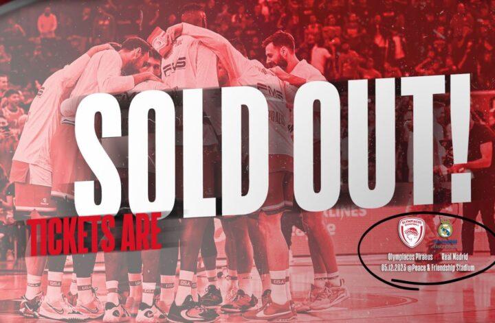 «Για μία ακόμη φορά ο κόσμος του Ολυμπιακού επιβεβαίωσε την τεράστια αγάπη του για την ομάδα, εξαντλώντας τα εισιτήρια της αναμέτρησης με την Ρεάλ Μαδρίτης, που θα διεξαχθεί σε μία εβδομάδα (05/12, 21.15) στο ΣΕΦ! Σας ευχαριστούμε από καρδιάς που δεν σταματάτε να κάνετε πράξη το #TogetherWeFight !