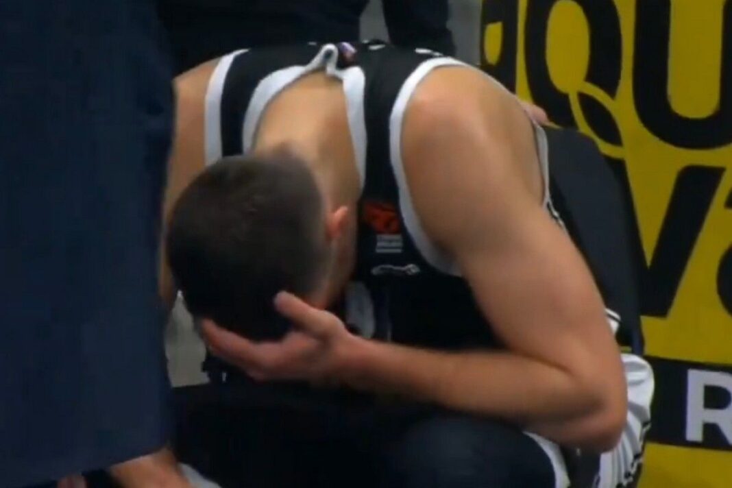 Ο γκαρντ των Ασπρόμαυρων προσπάθησε να σηκωθεί και να πατήσει το πόδι του ωστόσο δευτερόλεπτα μετά γονάτισε από τους πόνους και έβαλε τα κλάματα στον πάγκο.