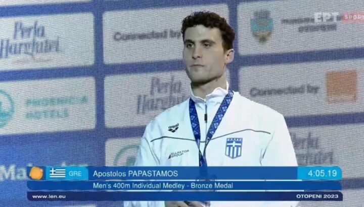 Ο κολυμβητής του Ολυμπιακού ολοκλήρωσε σε 4:05.19 στον τελικό των 400μ. μικτής ατομικής, κατακτώντας την τρίτη θέση και συντρίβοντας τόσο το ατομικό του ρεκόρ, όσο και το Πανελλήνιο Νέων Ανδρών (4:08.41).