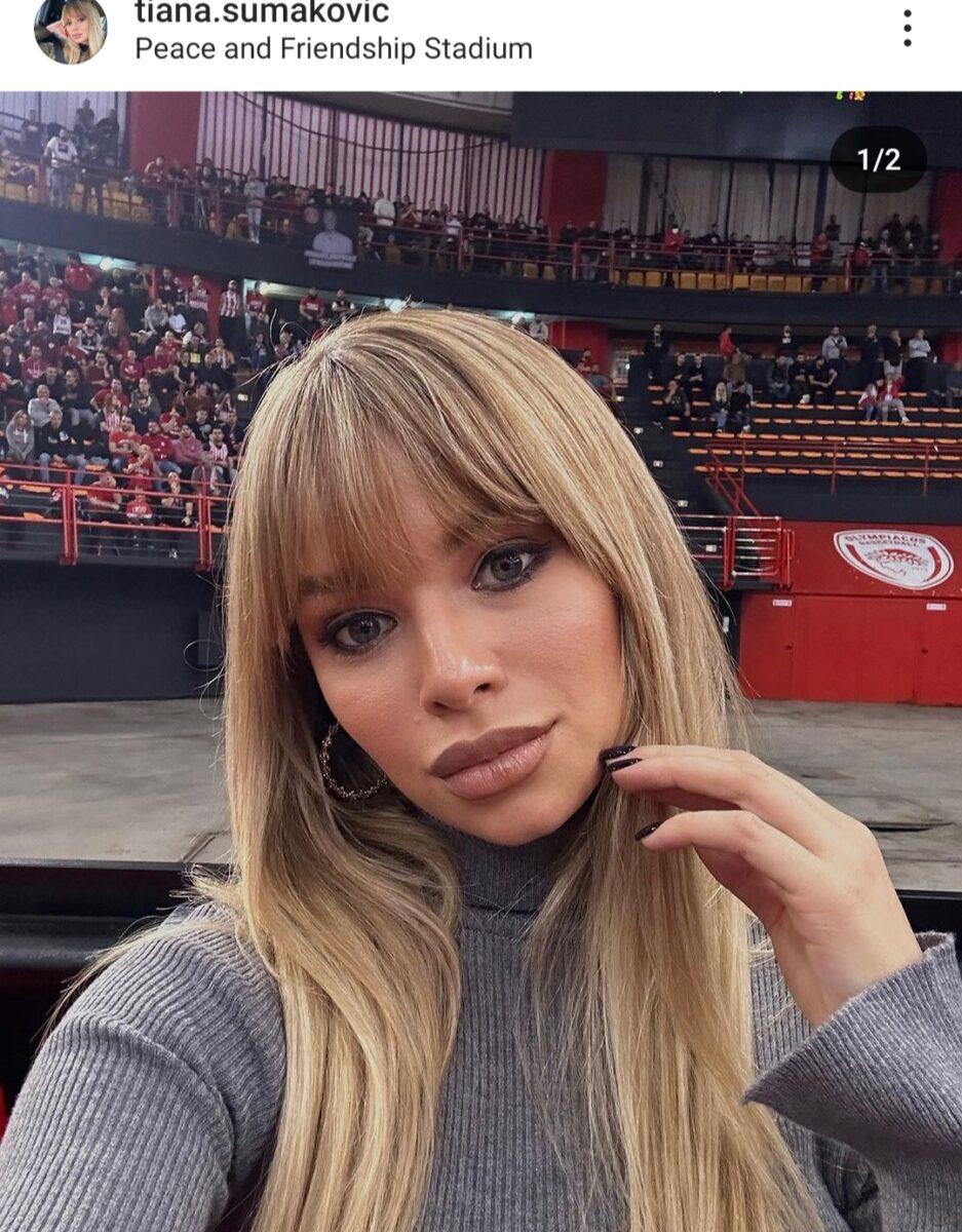 Η Τιάνα Σιμάκοβιτς, σύζυγος του Φίλιπ Πετρούσεφ, βρέθηκε για πρώτη φορά στο ΣΕΦ το βράδυ της Παρασκευής στο παιχνίδι του Ολυμπιακού με τη Βαλένθια, δίχως όμως να φέρει γούρι στην ομάδα του Γιώργου Μπαρτζώκα.