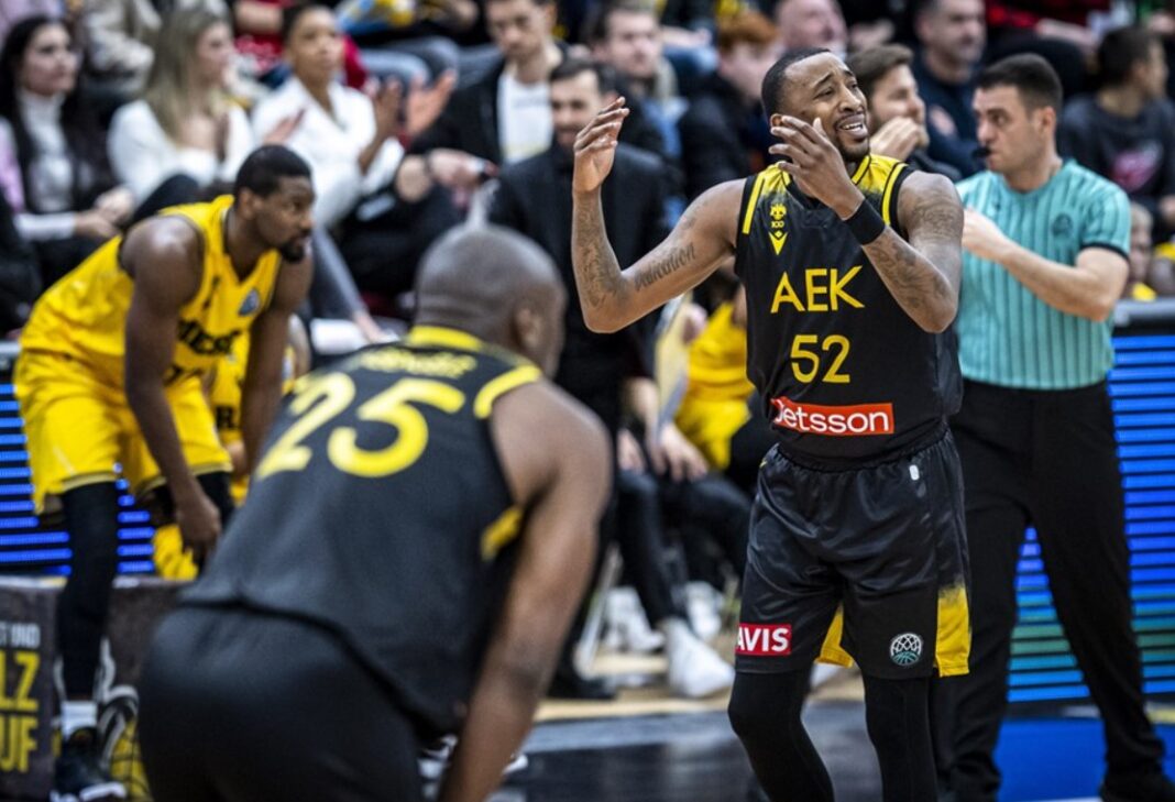 Τα ομαδικά στατιστικά της ΑΕΚ: 22/42 δίποντα, 4/21 τρίποντα, 23/38 βολές, 50 ριμπάουντ, 14 ασίστ, 18 λάθη, 7 κλεψίματα, 3 τάπες