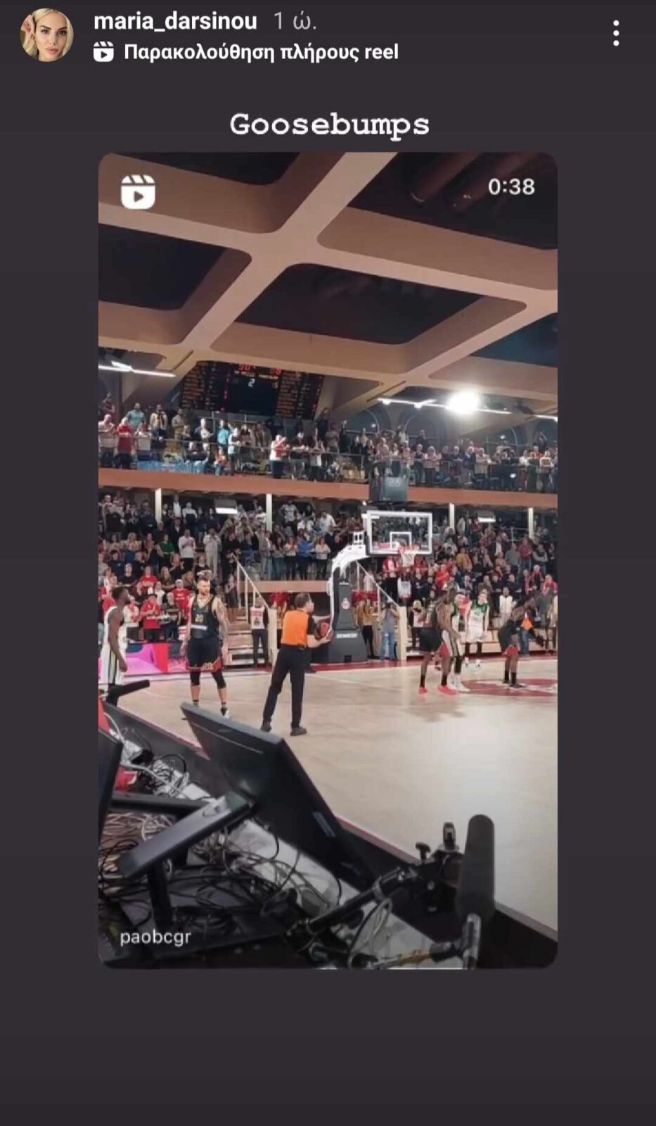 Συγκεκριμένα, η γυναίκα του αρχηγού των Πρασίνων ανέβασε ένα στόρι στο Instagram που δείχνει τη φάση με το νικητήριο καλάθι του Γκριγκόνις στο Μόντε Κάρλο και το συνόδευσε με την ατάκα «Ανατριχίλα», δείχνοντας έτσι τα συναισθήματά της για την έκβαση του αγώνα στο Μόντε Κάρλο.