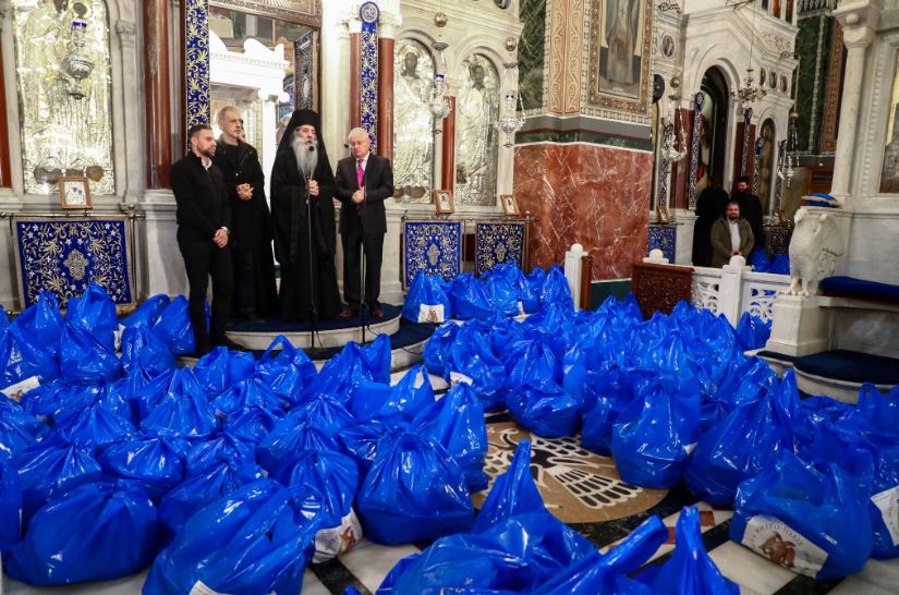 Ο Σεβασμιώτατος Μητροπολίτης Πειραιώς κ.κ. Σεραφείμ εξέφρασε την ευγνωμοσύνη του στον κ. Μαρινάκη, λέγοντας: «Σήμερα είναι η αποθέωση της αγάπης αλλά και της συνέργειας. Με την προστασία και την παρρησία του Δημάρχου μας, του Γιάννη Μώραλη, αλλά και του αγαπητότατου Προέδρου του «Γ. Καραϊσκάκης», κ. Βασίλη Βασιλειάδη, με τη φροντίδα, προστασία και δύναμη του κ. Βαγγέλη Μαρινάκη, γίνεται πράξη το μήνυμα της εκκλησίας. Που είναι μήνυμα αγάπης, αλληλοπεριχώρησης και στοργής. Μοιράζονται δέματα καλοσύνης και ηθικής, πνευματικής και υλικής στήριξης. Σε ανθρώπους που το έχουν τόση ανάγκη αυτές τις μέρες, που είναι μέρες χαράς και οικογενειακής πληρότητας. Θέλω να εκφράσω την ευγνωμοσύνη μου και στον Πρόεδρο, τον Βαγγέλη Μαρινάκη, στον Δήμαρχο Γιάννη Μώραλη και στον αγαπητό Βασίλη Βασιλειάδη, για τη συνέργειά τους. Είμαστε συντονισμένοι σαν ένας άνθρωπος στην αντιμετώπιση όλων των προβλημάτων που υπάρχουν από τη σημερινή κακοδαιμονία των καιρών μας και του κόσμου μας. Το πρόταγμά μας, όπως και του Ολυμπιακού, είναι αγάπη χωρίς όρια».