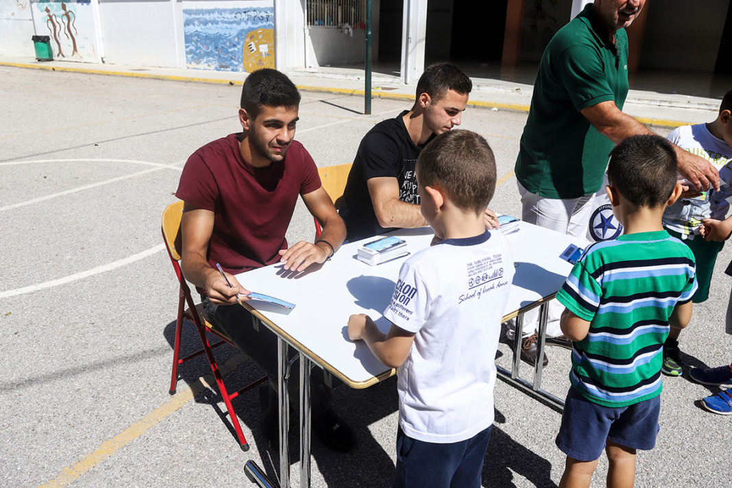 Επίσης, οι δύο παίκτες του Ατρόμητου μοίρασαν αυτόγραφα και συνομίλησαν με τους μαθητές του σχολείου.