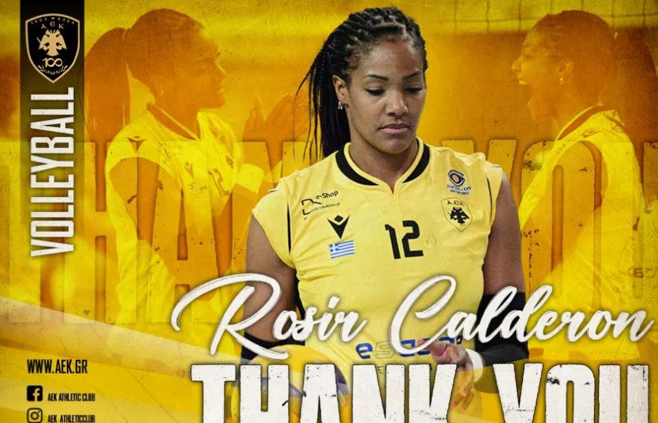 Η ανακοίνωση: «Η ΑΕΚ ανακοινώνει την κοινή συναινέσει λύση της συνεργασίας της με την Ροσίρ Καλντερόν. Η Ροσίρ αποτελεί μια από τις σπουδαιότερες αθλήτριες στην ιστορία μας και για εμάς θα αποτελεί πάντα τιμή, που φόρεσε την ένδοξη φανέλα του σωματείου μας. Ροσίρ, σε ευχαριστούμε για όλα και θα αποτελείς πάντα μέλος της οικογένειάς μας».