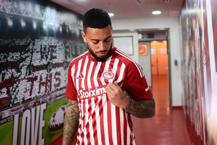 Την Παρασκευή (2/2) ο Πορτογάλος στόπερ έβαλε την υπογραφή του στο συμβόλαιο που υπέγραψε με τον Ολυμπιακό και φόρεσε για πρώτη φορά την ερυθρόλευκη, στα πλαίσια της παρουσίασής του στο «Γ. Καραϊσκάκης».