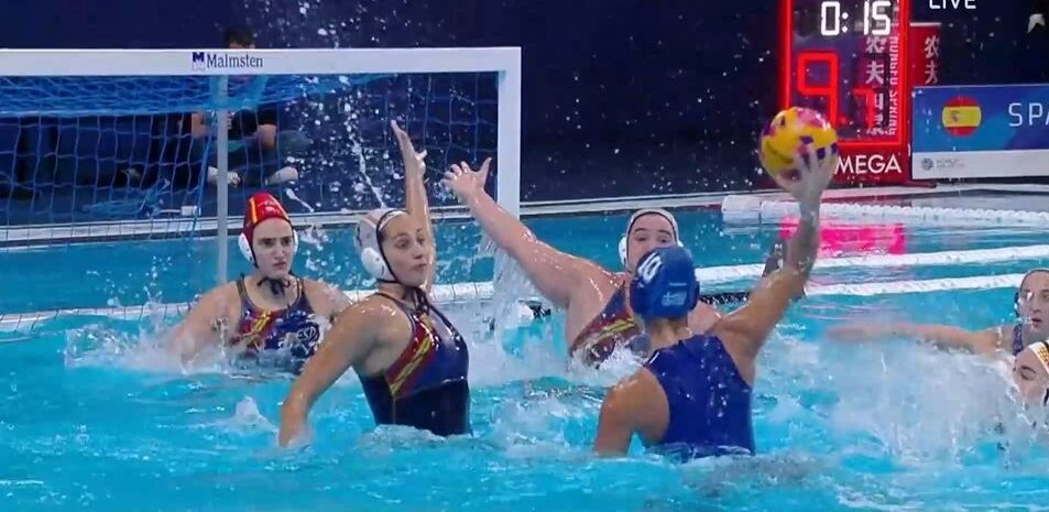 Η εθνική πόλο γυναικών ηττήθηκε με 16-8 στο δεύτερο παιχνίδι του Β’ ομίλου στο Παγκόσμιο Πρωτάθλημα πόλο από την ανώτερη Ισπανία που με 2/2 νίκες εξασφάλισε από σήμερα την πρόκριση στην προημιτελική φάση του τουρνουά στην Ντόχα, τη στιγμή που η «γαλανόλευκη» έχει μπροστά της έναν πρόωρο τελικό με το σαφώς πιο εύκολο εμπόδιο της Κίνας με το βλέμμα στην δεύτερη θέση του ομίλου της.