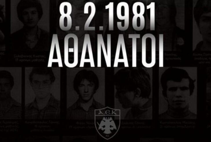 Η Ένωση χαρακτηρίζει «μαύρη μέρα του ελληνικού αθλητισμού» τη σημερινή και αναφέρει: «8.2.1981 – Αθάνατοι».