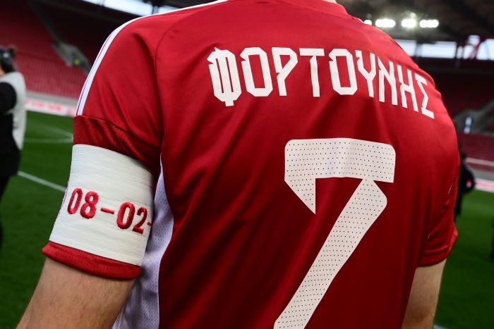 Ο Κώστας Φορτούνης φόρεσε περιβραχιόνιο που είχε ειδική αναφορά στη συγκεκριμένη μαύρη ημερομηνία ενώ οι παίκτες των δύο ομάδων άφησαν από ένα λευκό τριαντάφυλλο μπροστά από το άγαλμα των θυμάτων της Θύρας 7.
