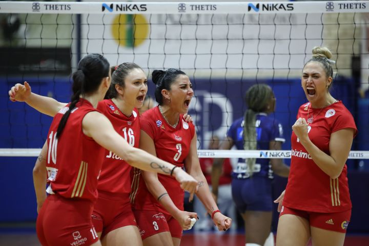 ΟΛΥΜΠΙΑΚΟΣ (Λορέντζο Μιτσέλι): Νίζετιχ 22 (20/42 επ., 2 άσοι, 67% υπ. – 50% άριστες), Καράρο 4 (1/3 επ., 1 άσος, 2 μπλοκ), Εμμανουηλίδου 5 (3/10 επ., 1 άσος, 1 μπλοκ), Κούμπουρα 14 (12/31 επ., 1 άσος, 1 μπλοκ), Φαριόλ 18 (7/14 επ., 3 άσοι, 8 μπλοκ), Μλεΐνκοβα 19 (17/40 επ., 2 μπλοκ, 33% υπ. – 25% άριστες) / Αρτακιανού (λ., 67% υπ. – 50% άριστες), Βλαχάκη, Τσιτσιγιάννη (0/5 επ.), Τάνη, Ζαφειρίου