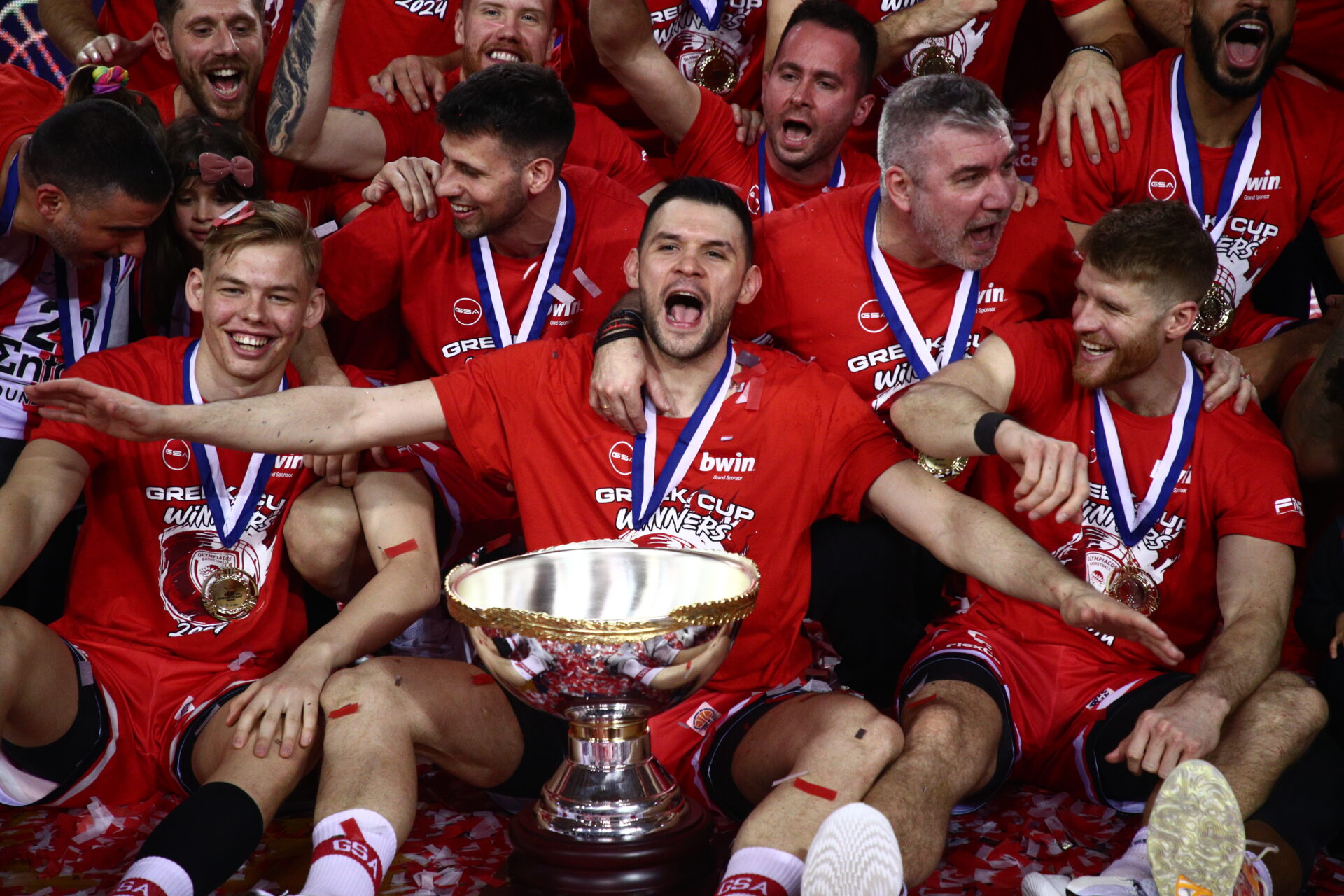 Οι Ερυθρόλευκοι πανηγύρισαν την 7η σερί τους κούπα από την αρχή του «Μέχρι Τέλους» κι έπειτα σε μία μεγάλη βραδιά που τη χάρηκαν με την ψυχή τους.