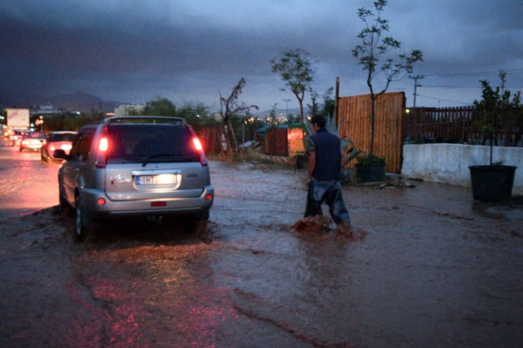 Οι χείμαρροι έχουν ήδη παρασύρει τους κάδους απορριμμάτων, ενώ οι κάτοικοι προσπαθούν να ανοίξουν τα φρεάτια.