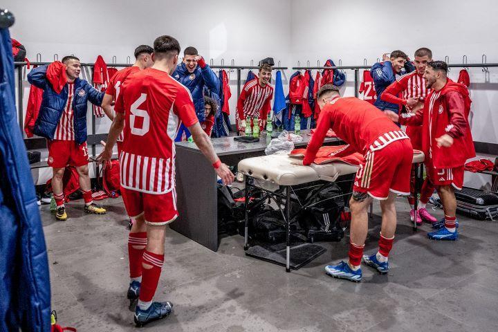 Η ομάδα Νέων του Ολυμπιακού πανηγύρισε μια ιστορική επιτυχία με την πρόκρισή της στις 4 κορυφαίες ομάδες του UEFA Youth League και αμέσως μετά τον θρίαμβο επί της Μπάγερν οι ποδοσφαιριστές φρόντισαν να σταθούν στα 99α γενέθλια που είχε ο σύλλογος την Κυριακή (10/3) εξηγώντας πως είναι πολύ σημαντική αυτή η επιτυχία ειδικά από τη στιγμή που συνδυάζεται με τη γιορτή της ομάδας.