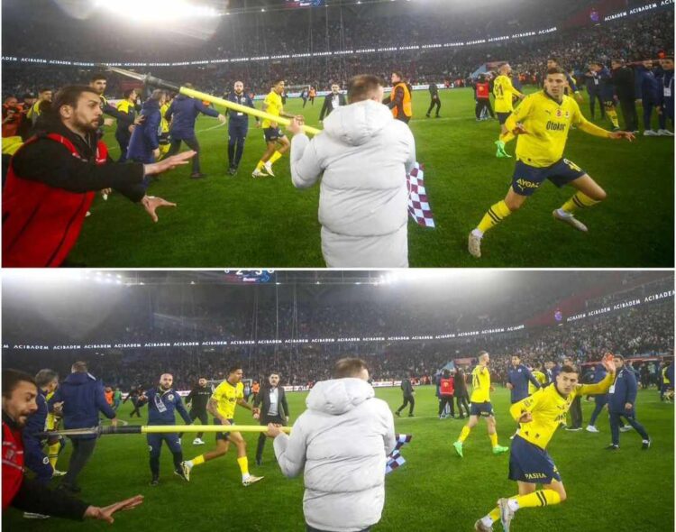 Και δεν είναι μόνο αυτό. Όπως φαίνεται στις φωτογραφίες που κυκλοφόρησαν οι οπαδοί της Τράμπζονσπορ εισέβαλλαν στο χορτάρι με αιχμηρά αντικείμενα, όπως μαχαίρια και ρόπαλα, με τους παίκτες της Φενέρ που ήρθαν στα χέρια μαζί τους (κυρίως οι Σάμιουελ, Οστερβόλντε και Μπατσουαγί) να διατρέχουν κίνδυνο μέχρι και για τη ζωή τους, καθώς φορούσαν μόνο τη φανέλα, το σορτσάκι και τα ποδοσφαιρικά τους.
