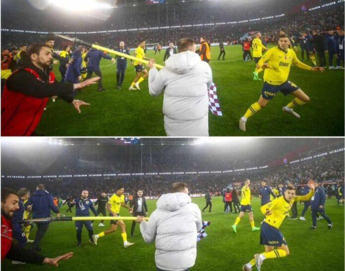 Σοκαριστικό: Οι οπαδοί της Τράμπζονσπορ εισέβαλλαν στο χορτάρι με αιχμηρά αντικείμενα, όπως μαχαίρια και ρόπαλα, με τους παίκτες της Φενέρ που ήρθαν στα χέρια μαζί τους (κυρίως οι Σάμιουελ, Οστερβόλντε και Μπατσουαγί) να διατρέχουν κίνδυνο μέχρι και για τη ζωή τους