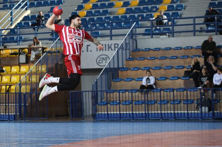Η ομάδα χάντμπολ του Ολυμπιακού πέρασε εμφατικά με 39-22 από την Πυλαία στη Θεσσαλονίκη κόντρα στην ομώνυμη ομάδα συνεχίζοντας την αήττητη πορεία του στο φετινό πρωτάθλημα της Handball Premier, όπου βρίσκεται μόνος πρώτος στην κατάταξη έχοντας εξασφαλίσει ήδη το πλεονέκτημα έδρας ενόψει πλέι οφ.
