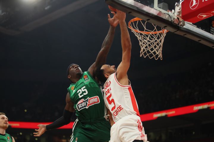 Ο Ερυθρός Αστέρας πάλευε με τον Μπολομπόι να κλείσει τη διαφορά αλλά οι Πράσινοι χωρίς να κάνουν λάθη και με τον Ναν σε γεμάτη βραδιά συνέχισαν να παράγουν πόντους στην επίθεση. Ο Τεόντοσιτς σουλούπωσε επιθετικά την ομάδα του Γιάννη Σφαιρόπουλου αλλά στην άμυνα τα προβλήματα ήταν ορατά ειδικά όσο ο Παναθηναϊκός σούταρε τόσο αξιόπιστα (9/13 στο πρώτο μέρος) με τη διαφορά να φτάνει στους 13 αλλά να κλείνει στους 10 (41-51) στο 20′.