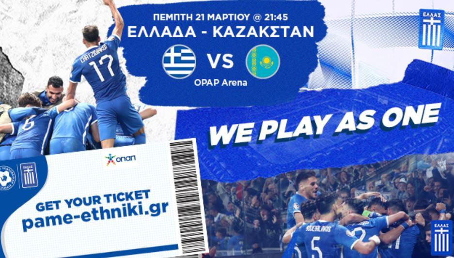 «Με δεδομένο ότι έχουν μείνει ελάχιστα εισιτήρια προς διάθεση (λιγότερα από 1.000), η Ελληνική Ποδοσφαιρική Ομοσπονδία υπενθυμίζει σε όλους τους κατόχους εισιτηρίων για τον αγώνα Ελλάδα-Καζακστάν την Πέμπτη 21 Μαρτίου (21:45, OPAP Arena), ότι η έγκαιρη προσέλευση στην OPAP Arena είναι άκρως απαραίτητη.