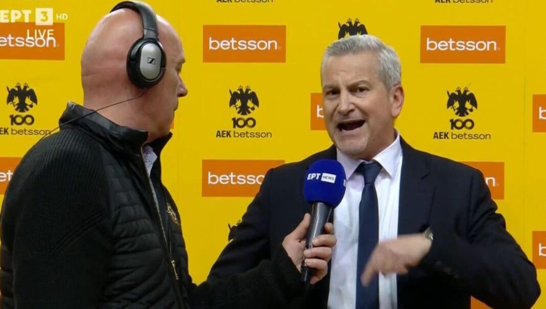 Ξέσπασε ο Ηλίας Ζούρος μπροστά στην κάμερα της ΕΡΤ μετά την εντός έδρας ήττα της ΑΕΚ από το Περιστέρι.