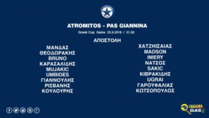 Ο Νταμίρ Κάναντι έκανε γνωστούς τους 18 ποδοσφαιριστές που βρίσκονται στην αποστολή του Ατρόμητου για την αναμέτρηση με τον ΠΑΣ Γιάννινα για το Κύπελλο