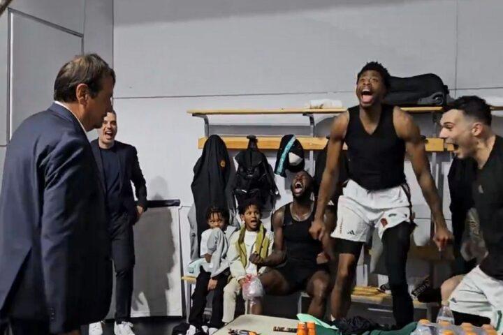 Το κλίμα στα αποδυτήρια του Παναθηναϊκού ήταν κάτι παραπάνω από ευχάριστο κι έγινε ακόμη πιο έντονο όταν ο ισχυρός άνδρας της ομάδας, Δημήτρης Γιαννακόπουλος, έκανε την είσοδό του μοιράζοντας συγχαρητήρια στους παίκτες και ζητώντας δύο ακόμη νίκες στα ματς που απομένουν.