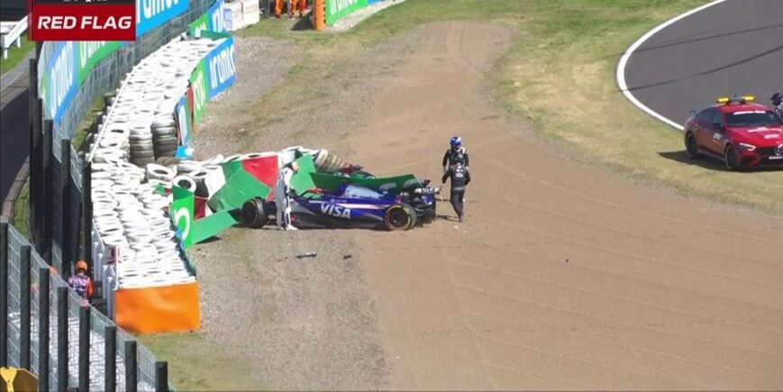 Στην τρίτη στροφή μετά την εκκίνηση του Grand Prix της Ιαπωνίας, ο Άλεξ Άλμπον και ο Ντάνιελ Ρικιάρντο συγκρούστηκαν, με αποτέλεσμα να καταλήξουν αμφότεροι εκτός πίστας και να σηκωθεί κόκκινη σημαία για να καθαριστεί η πίστα.