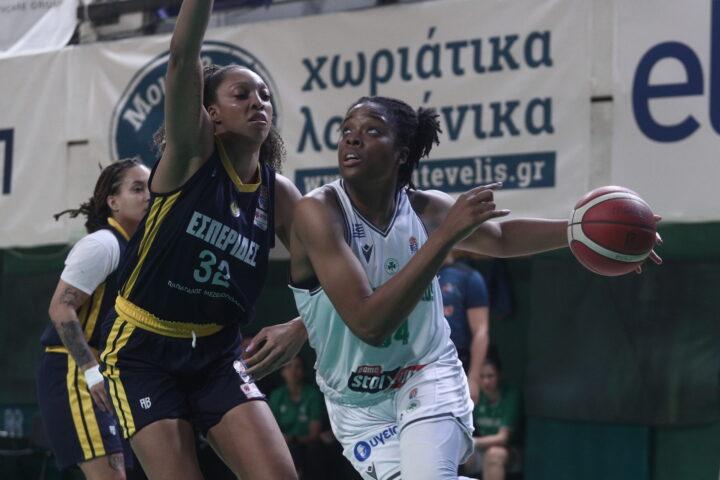 Ο Παναθηναϊκός επικράτησε άνετα με 75-58 των Εσπερίδων Καλλιθέας στον πρώτο αγώνα για την ημιτελική σειρά στην Α1 Γυναικών, με την Αλέιν να είναι ξανά η κορυφαία των Πρασίνων κάνοντας double-double με απολογισμό 19 πόντων και 16 ριμπάουντ.