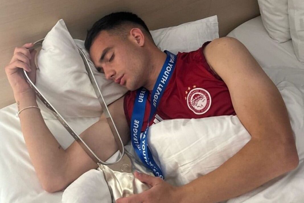 Το βράδυ, όπως και οι συμπαίκτες του, έκανε τον πιο γλυκό ύπνο της ζωής του, αγκαλιά με το τρόπαιο του Youth League, αντιγράφοντας τη viral φωτογραφία του πρωταθλητή κόσμου, Λιονέλ Μέσι, όταν κοιμήθηκε μαζί με το τρόπαιο του Μουντιάλ.