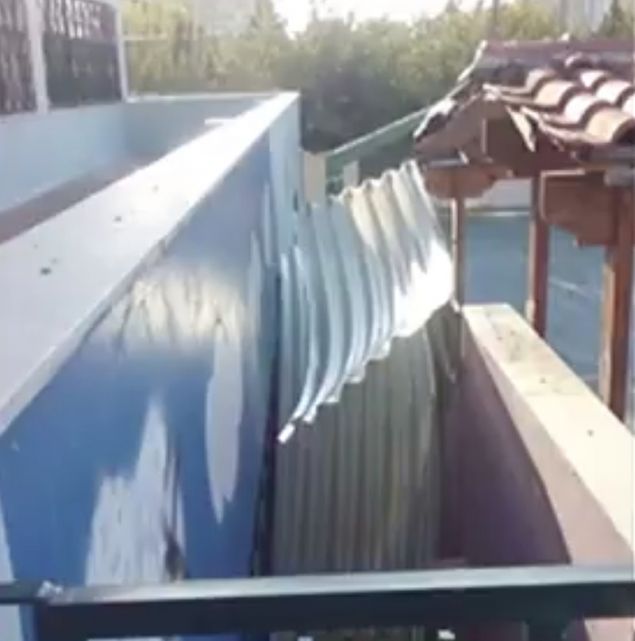 Ευτυχώς οι μαθητές και οι δάσκαλοι στο 2ο δημοτικό σχολείο στο Καματερό είχαν αρχίσει να μπαίνουν στις τάξεις όταν αποκολλήθηκε μέρος της σκεπής από τον αέρα και αυτός ήταν και ο λόγος που αποφεύχθηκε κάποιος τραυματισμός.